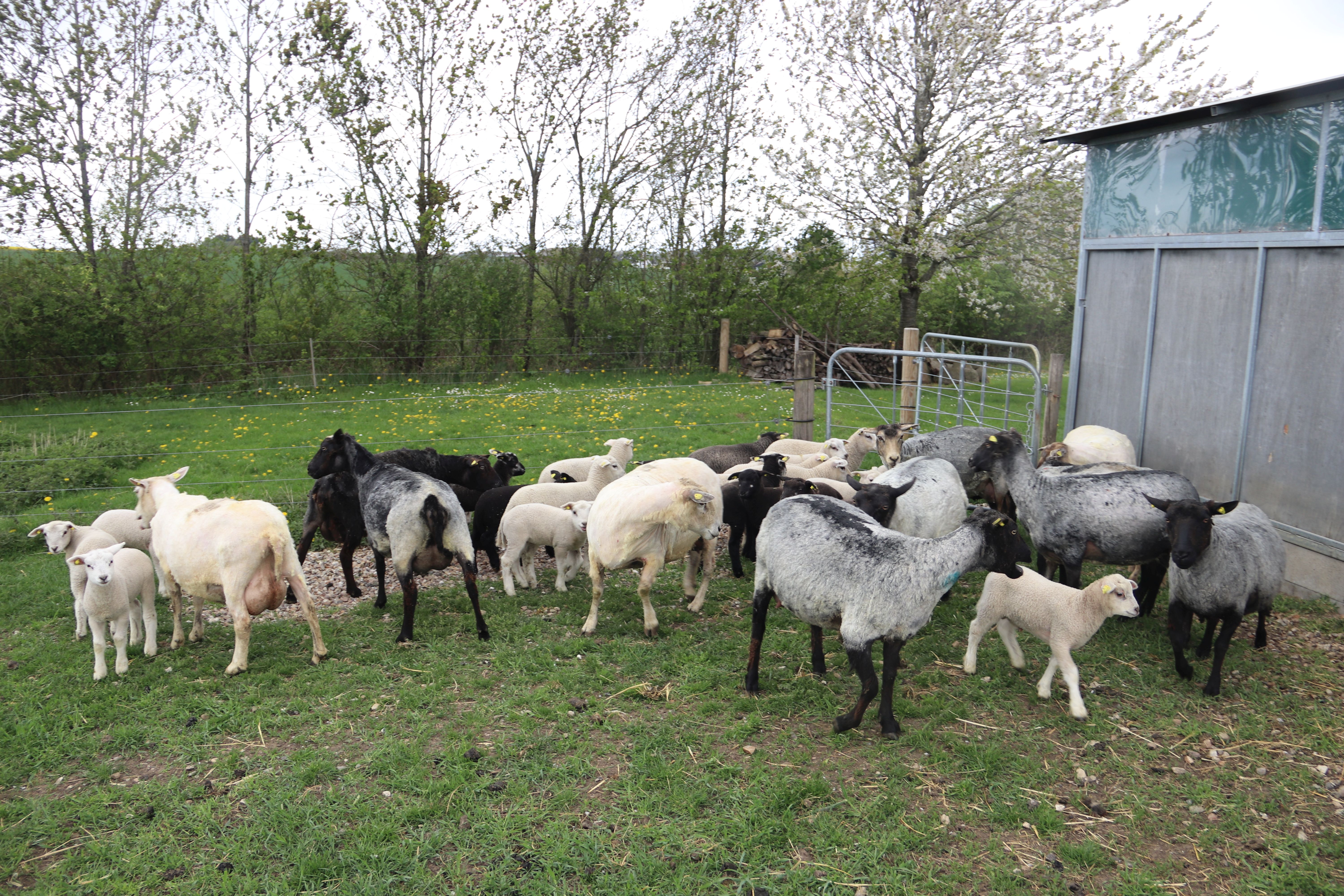 Da så klipningen var vel ovre, skulle alle jo forenes igen – og der blev et øredøvende spektakel. Når jeg selv klipper – ét får ad gangen – så opstår der lidt forvirring, men det går hurtigt over. Men nu var det alle får, der var blevet klippet på én gang. Forvirringen var stor – alle lammene syntes, deres mor lugtede lidt anderledes, hun så definitivt anderledes ud, men jeg tænker det mest er lugten og den anderledes fornemmelse af “mor”, der forvirrer. Ih du milde ….. sikke en larm af brægende får og lam.
