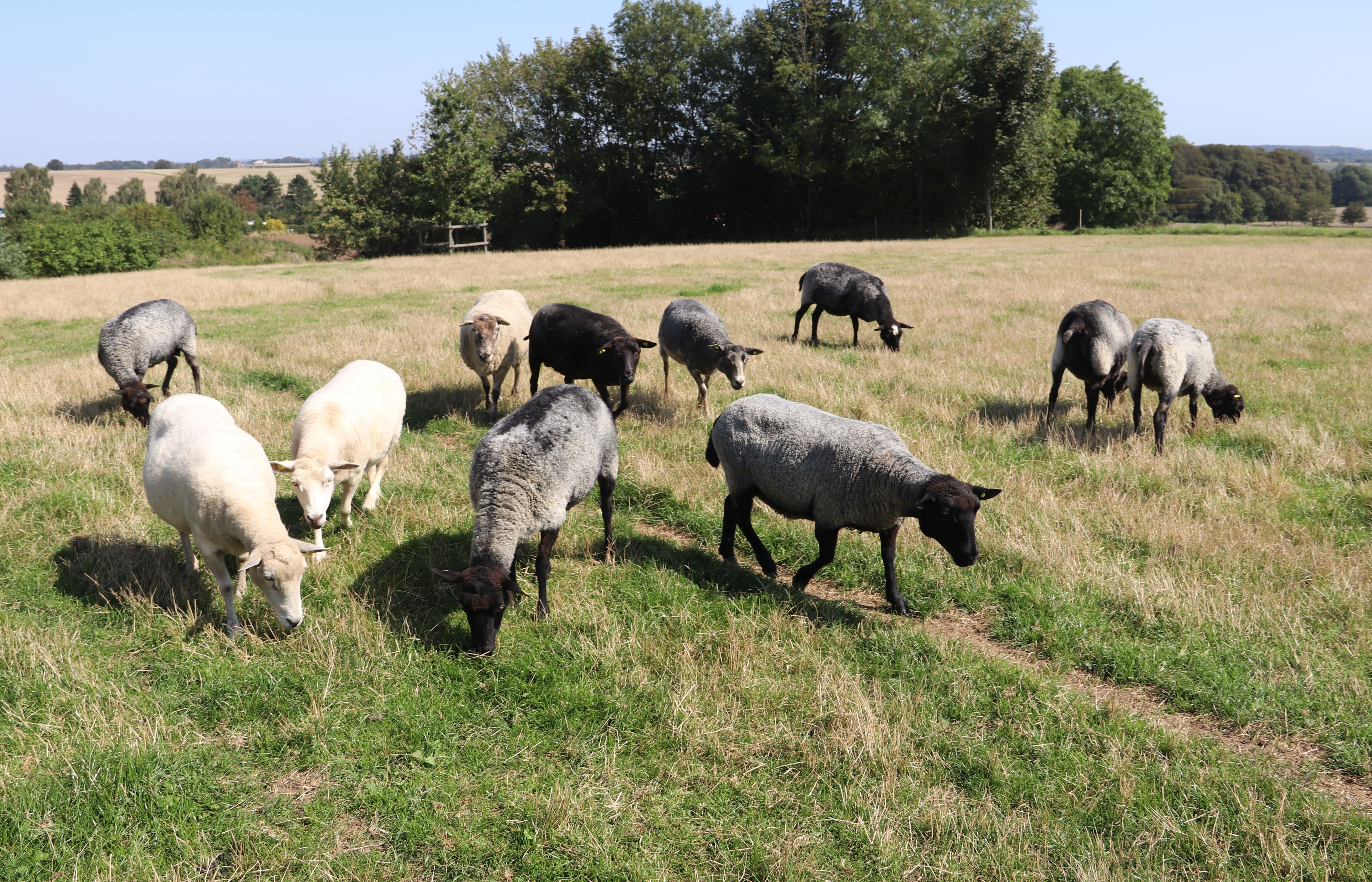 Men bortset fra vejret har denne august været en meget rolig måned på fåre/lamme-fronten. Græsset har fået vand og gro, så er der mad til alle. Lammene vokser og trives – og fårene synes nok, at de har lige lidt for lidt at spise, men de har faktisk lige tilpas. De skal bare gå og stabilisere sig, kroppen skal hvile og samle kræfter, men de skal ikke blive tykke. De er så smukke nu her – og med en flot og nyvasket pels!